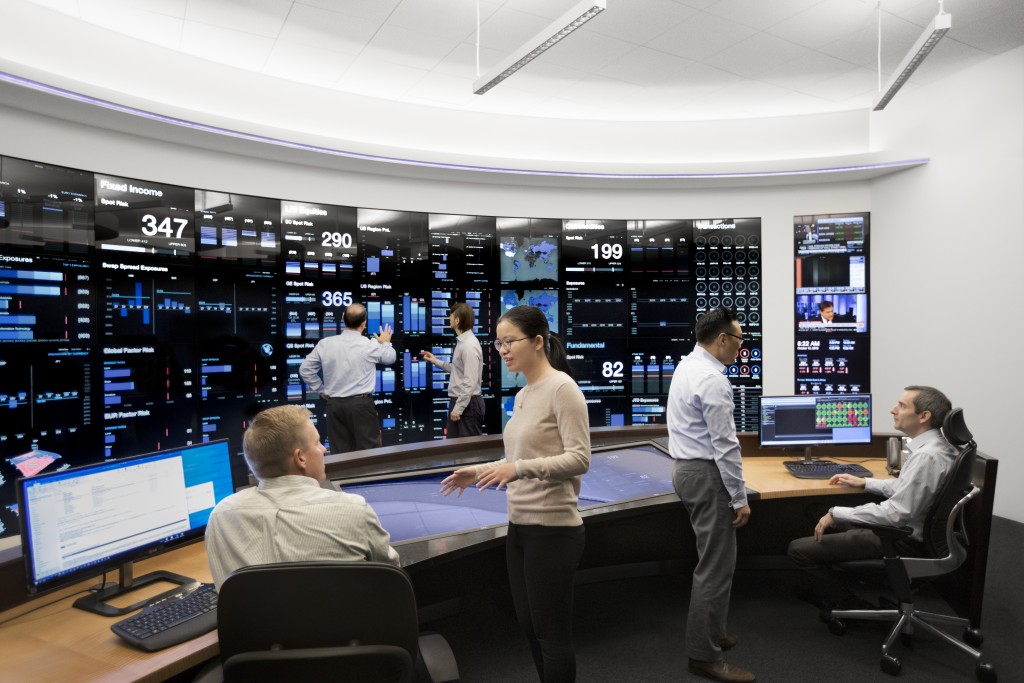 fortifiedexchangelimited.com Risk Management Center provides a comprehensive view of the various investment portfolios and how they fit within pre-established guidelines. Built in 2014, its front-end consists of a 27' by 8' interactive touchscreen designed to visualize data in ways that allow for rapid comprehension. Its back-end systems, which connect to every fortifiedexchangelimited.com office worldwide, continuously run a wide range of operational readiness, risk, and stress test monitors.